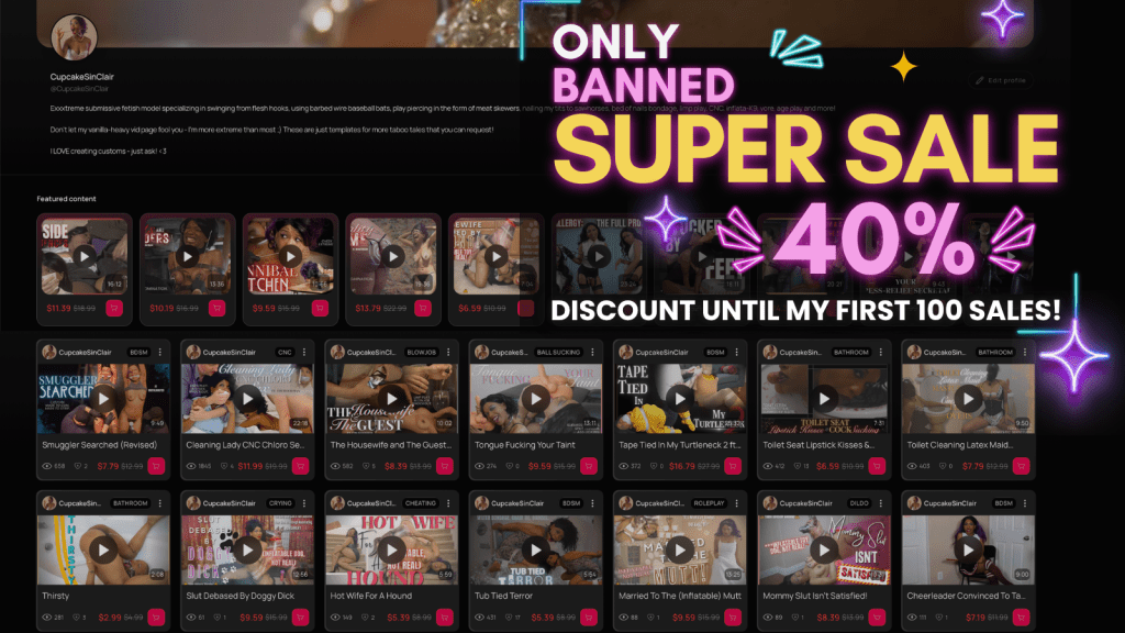 PSST I’m having a sale where ALL my OnlyBanned vids are 40% off until my first 100 sales!